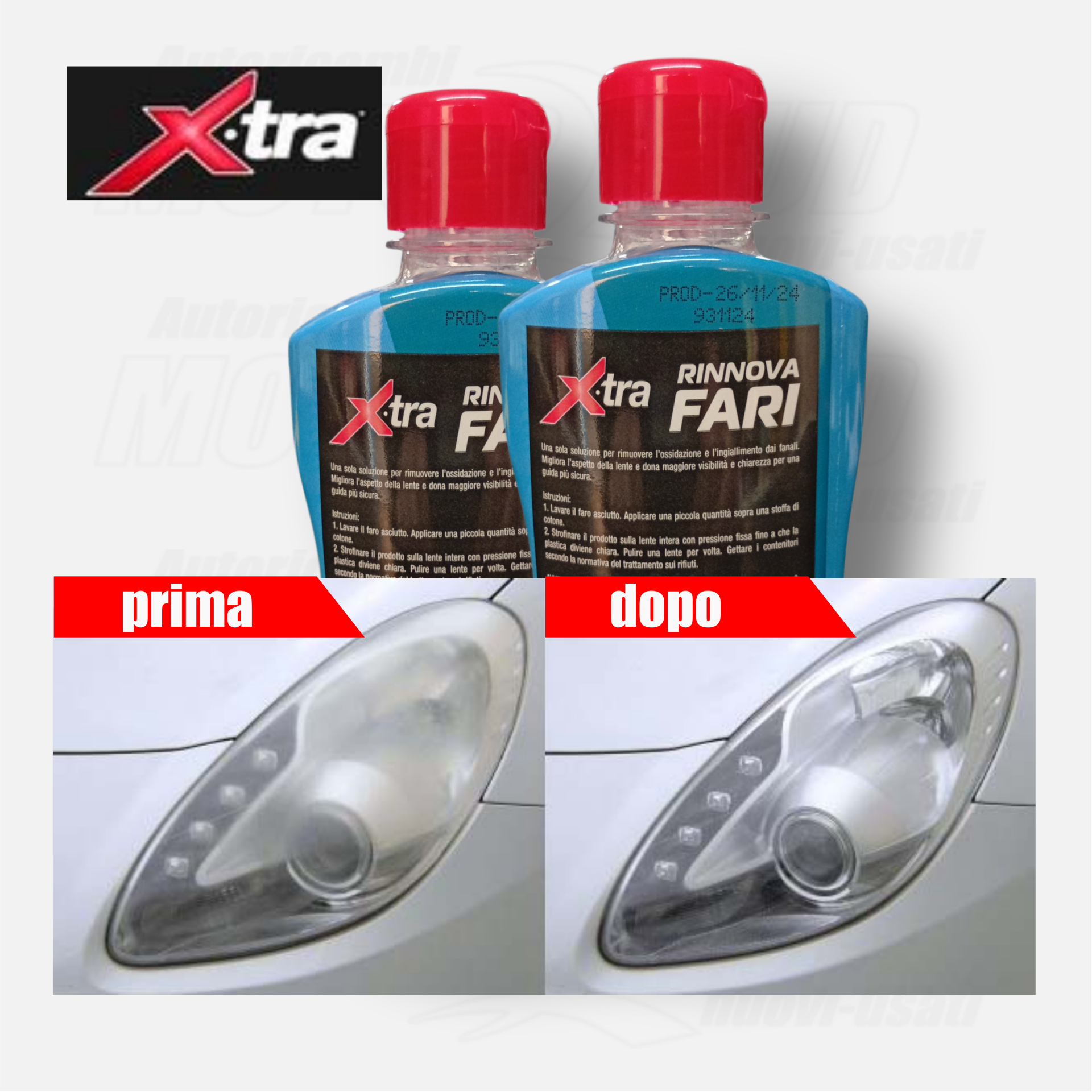 Rapido e senza sforzi ripristina la trasparenza e rimuove l'ossidazione, dando lucidità ai tuoi fari.