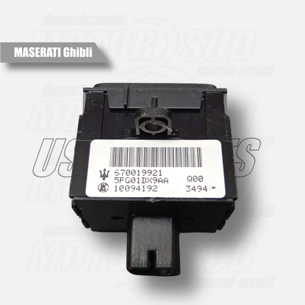 L'interruttore con codice ricambio 670019921 è un modulo di controllo multifunzione situato sul cruscotto della Maserati Ghibli (modello M157), specificamente progettato per gestire l'illuminazione interna e l'assetto dei fari.