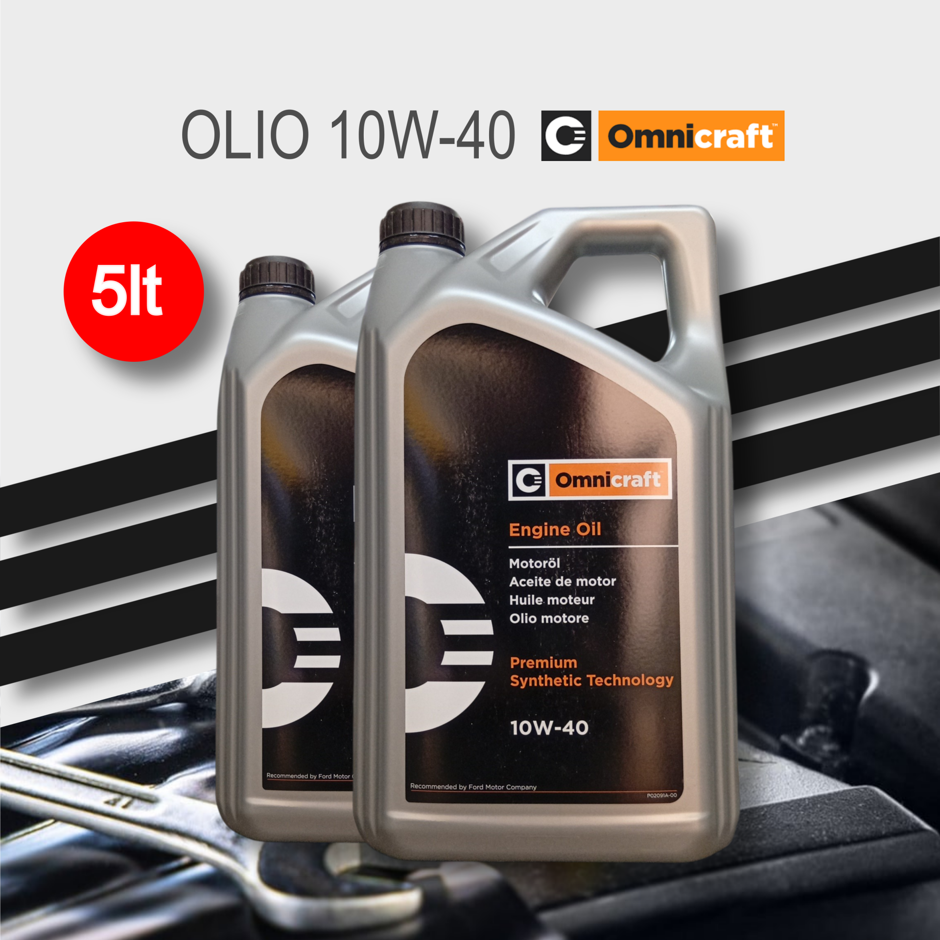 L'olio motore Omnicraft 10W-40 nel formato da 5 litri è un lubrificante di tipo semi-sintetico a tecnologia avanzata, progettato specificamente per offrire prestazioni ottimali su motori a benzina e diesel di veicoli moderni. Fa parte della linea ricambi Omnicraft, un marchio lanciato da Ford per coprire le esigenze di manutenzione di veicoli non a marchio Ford (multimarca).